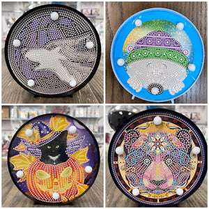 This listing is for one diamond painted night light. You choose your design below. The kit includes everything you need to complete the kit but you will need two double AA batteries sold separately.