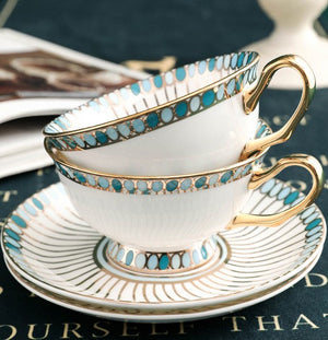 Unique Tea Cup and Saucer in Gift Box. Elegant British Ceramic Coffee Cups. Bone China Porcelain Tea Cup Set for Office. Green Ceramic Cups