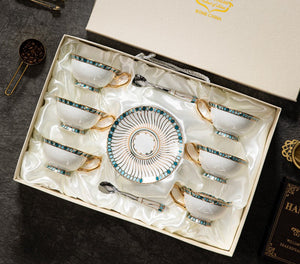 Home Unique Tea Cup and Saucer in Gift Box, Elegant British Ceramic Coffee Cups, Bone China Porcelain Tea Cup Set for Office, Green Ceramic Cups