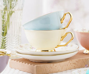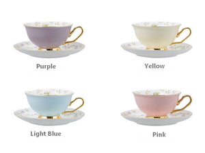 Purple: 1 Tea Cup + 1 Saucer in Gift Box, Yellow: 1 Tea Cup + 1 Saucer in Gift Box, Light Blue: 1 Tea Cup + 1 Saucer in Gift Box, Pink: 1 Tea Cup + 1 Saucer in Gift Box |