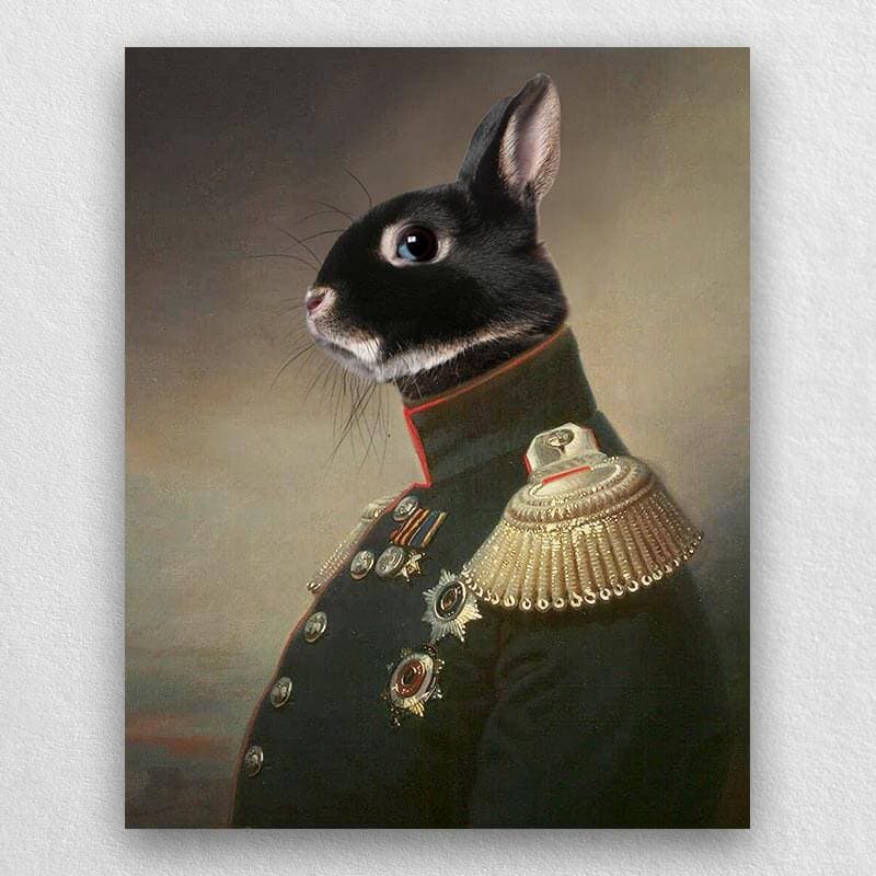Unique artwork, we turn your pet into a royal animal portraits and canvas prints.