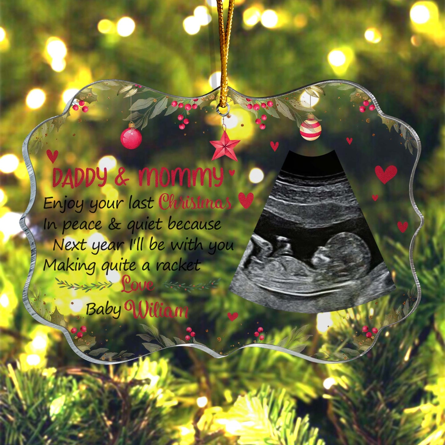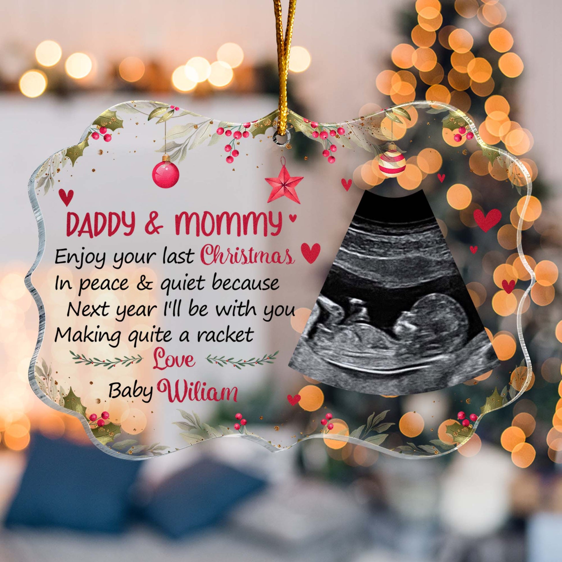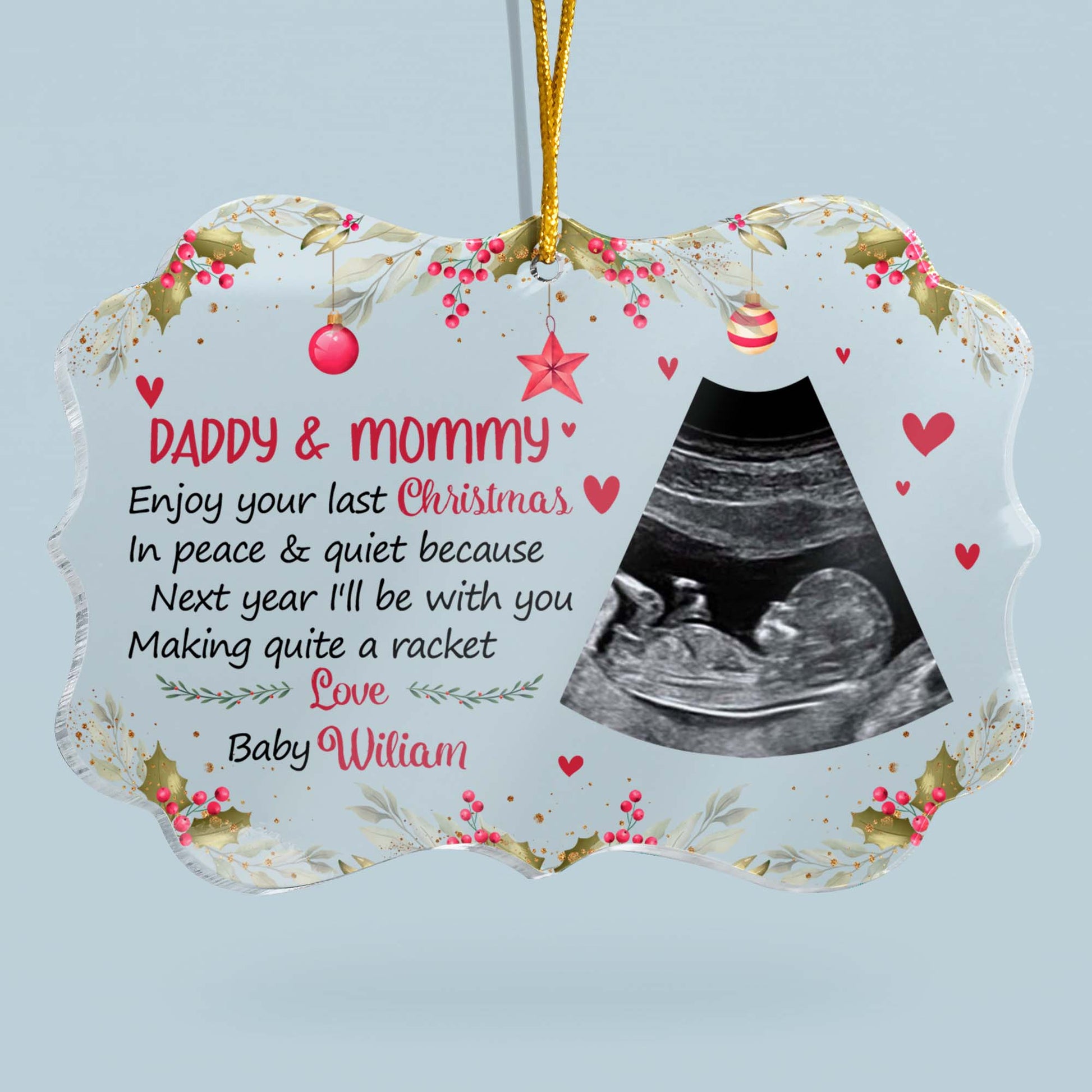 Enjoy Your Last Christmas In Peace & Quiet - Personalized Acrylic Ornament - Christmas Gift For Daddy-To-Be, Mommy To Be, Mom, Father, Grandma, Grandpa, Family Members - From Baby, Bump