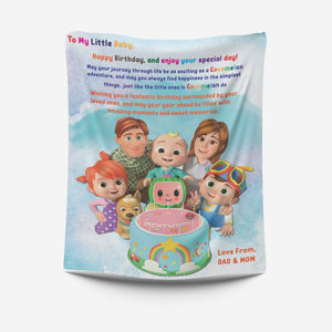 A Cocomelon-themed blanket for a baby's birthday becomes a cherished item that not only provides warmth and comfort but also embodies the spirit of joy and celebration. It becomes a part of the baby's world, creating a connection to their favorite show and serving as a reminder of the love and excitement surrounding their special day.