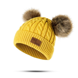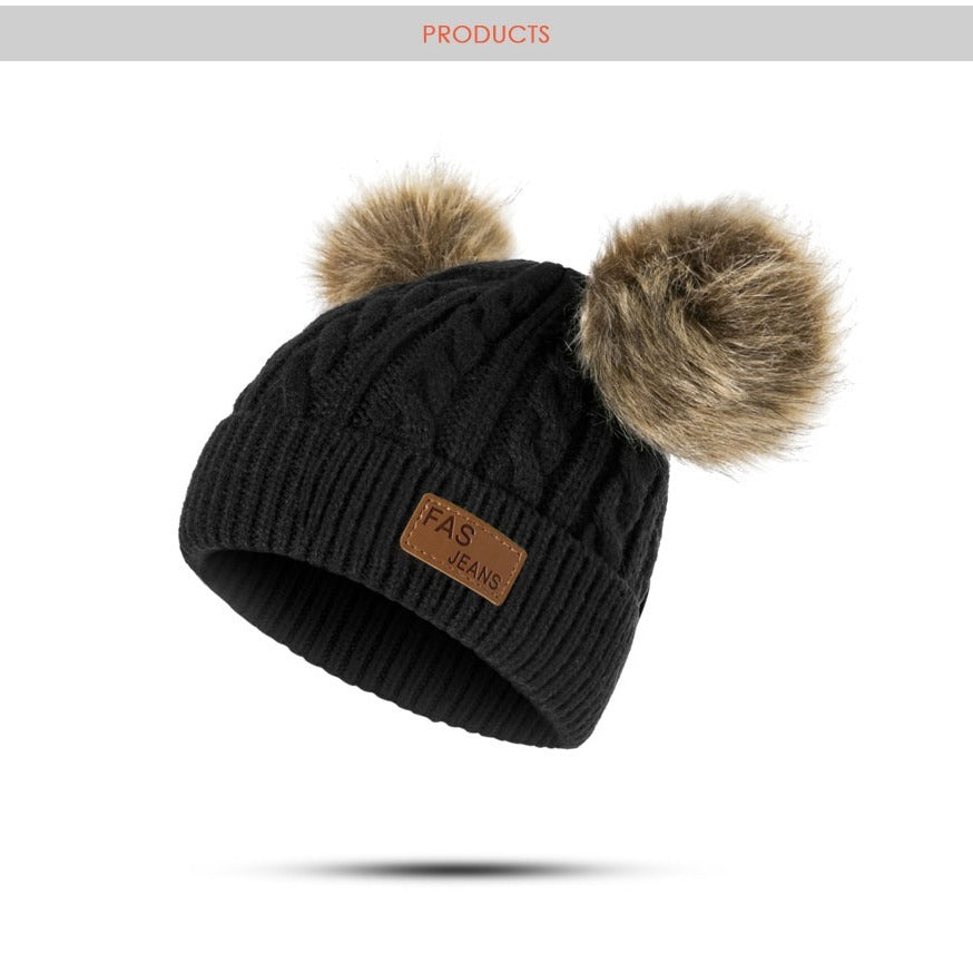 Girls Knit Cap, Thermal Knitted Beanie Hat With Two Plush Ball For Winter