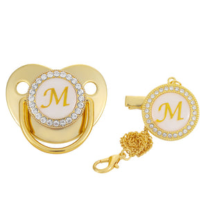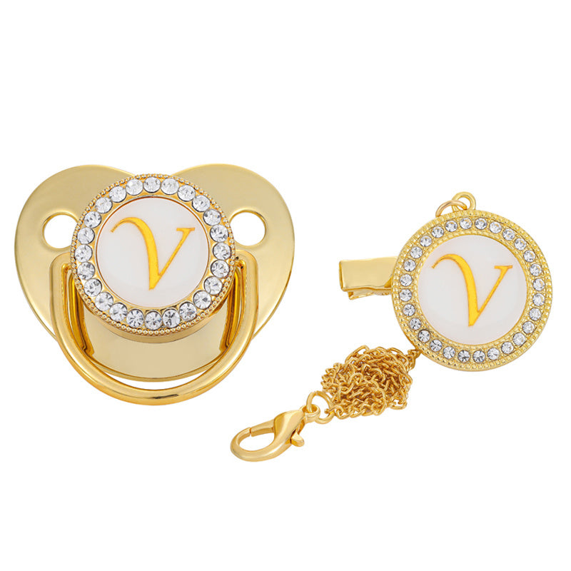 Golden 26 Letter Baby Pacifier With Rhinestone