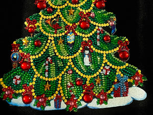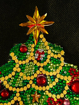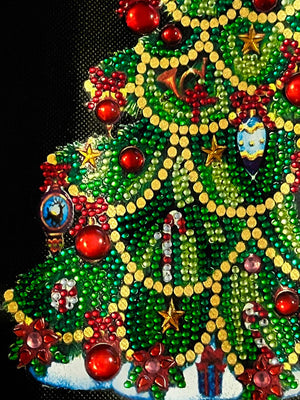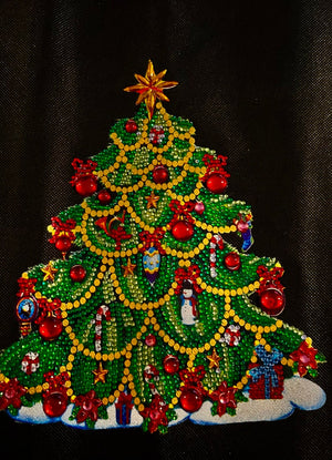 Hand Embellished, Christmas Gift Bag, Christmas Tree, Canvas Tote Bag, Shoulder Bag, Gift Bag, Shopping Bag, Diamond Art