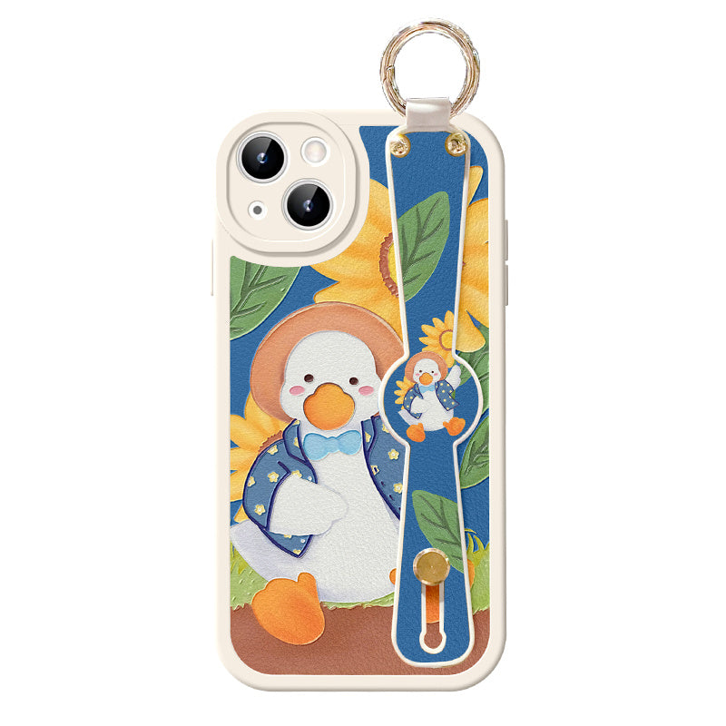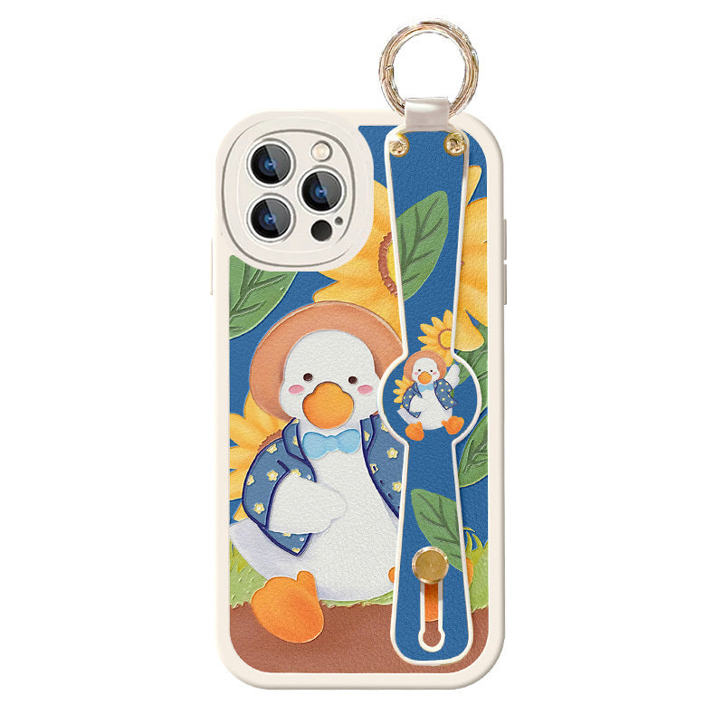 Lambskin Wrist Strap Bracket All Inclusive Phone Case