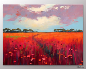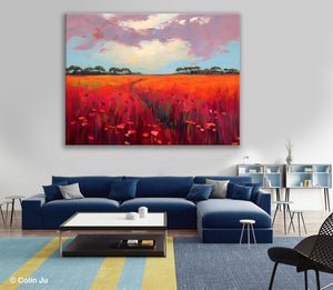Landscape Canvas Paintings. Red Poppy Flower Field Painting. Acrylic Abstract Art. Landscape Acrylic Painting. Living Room Wall Art Paintings