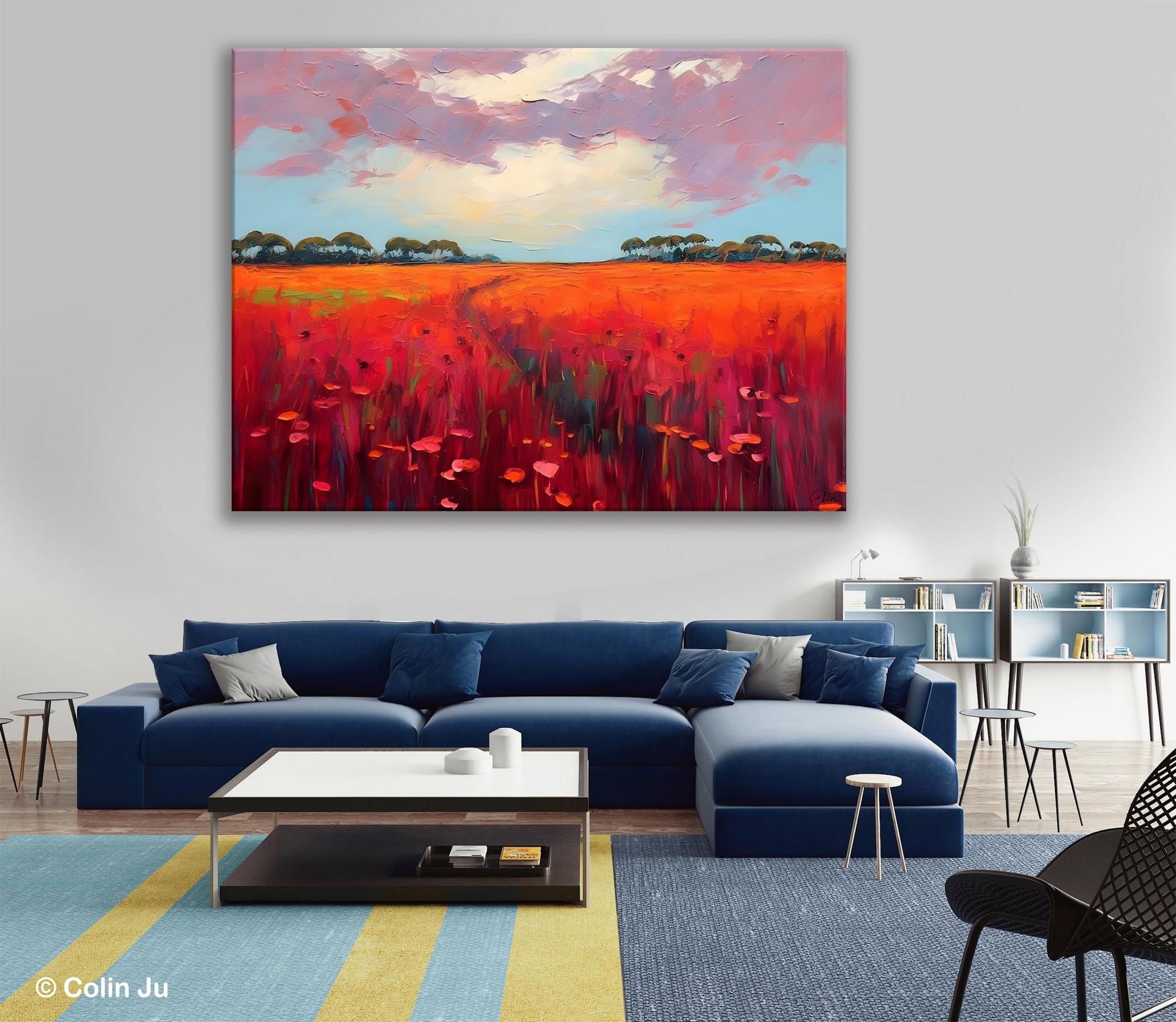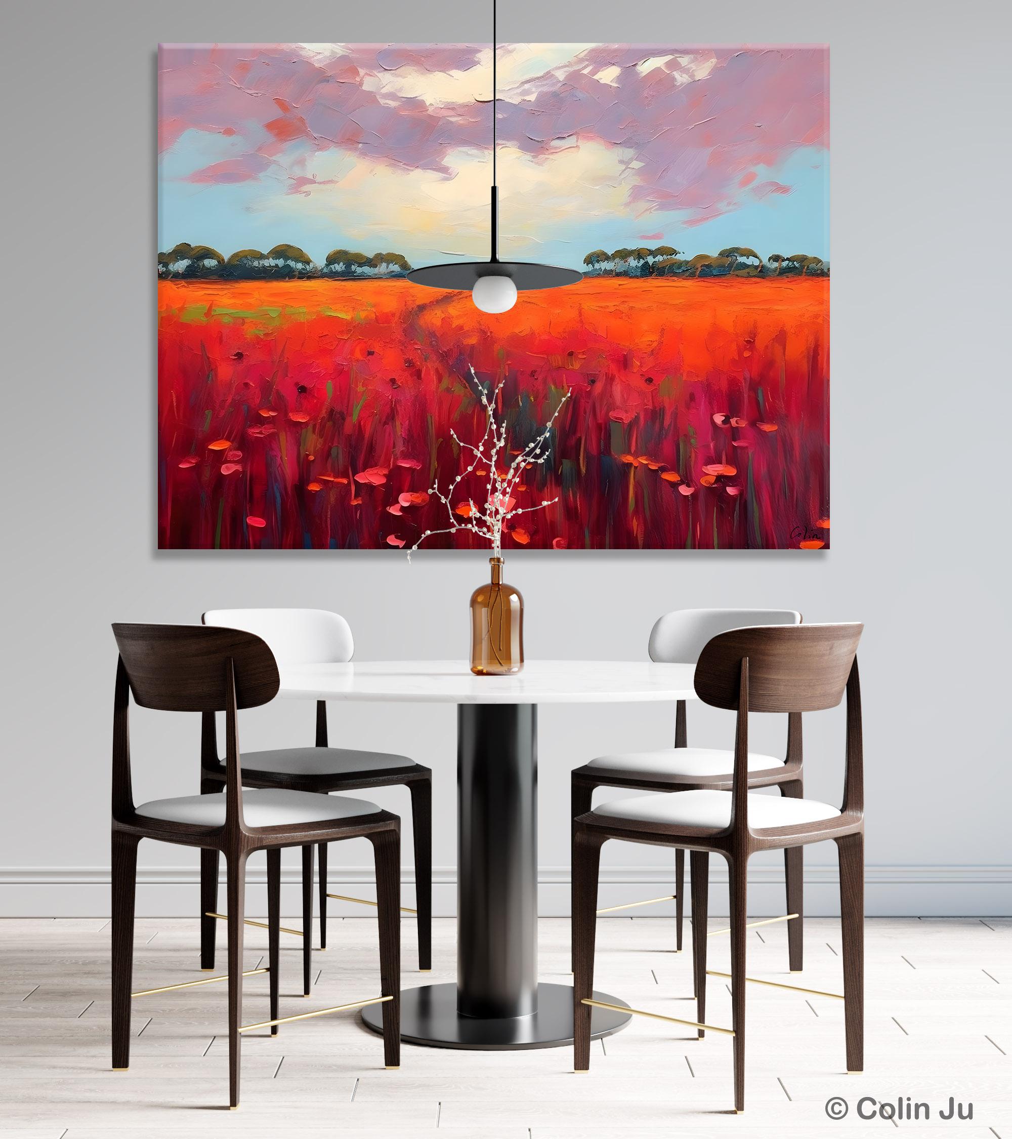 Acrylic Abstract Art, Landscape Canvas Paintings, Red Poppy Flower Field Painting, Landscape Acrylic Painting, Living Room Wall Art Paintings