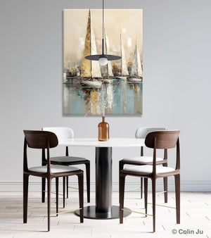 Modern Abstract Wall Art Paintings, Large Original Canvas Art for Bedroom, Large Painting Ideas for Living Room, Sail Boat Canvas Painting