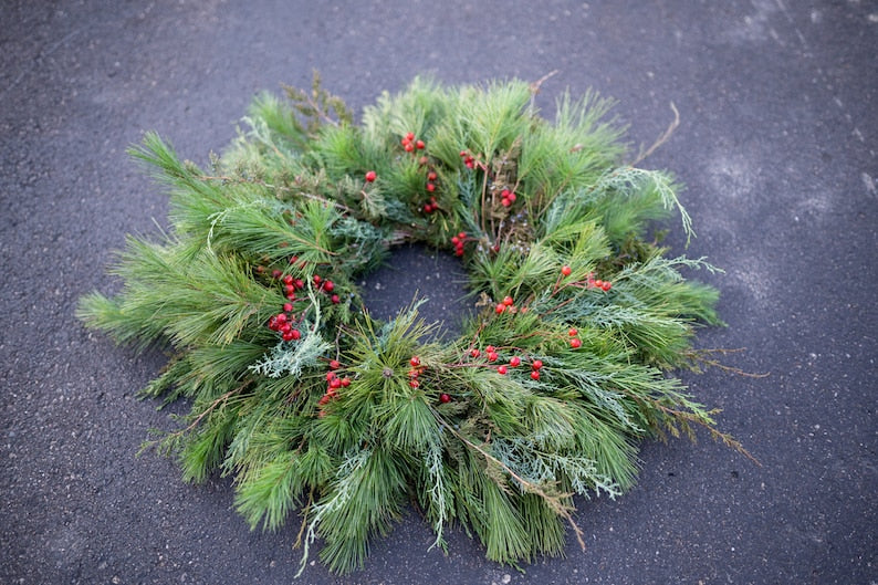 Discover the rustic elegance of our Natural Fresh-Cut Christmas Wreath, meticulously crafted to infuse your home with the essence of the holiday season. Handcrafted from premium fresh-cut foliage, this wreath captures the beauty of nature and brings a touch of tradition to your holiday decor.