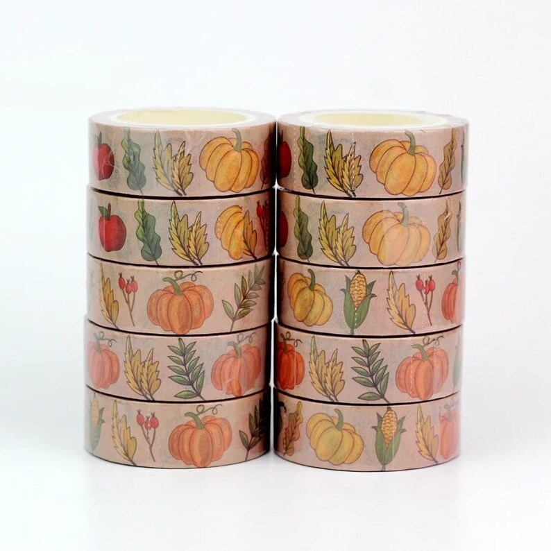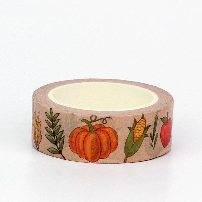 New Release: Fall Harvest With Fresh Corn, Pumpkins And Gourds, Apples And Fall Leaves, Washi Tape Samples And Rolls