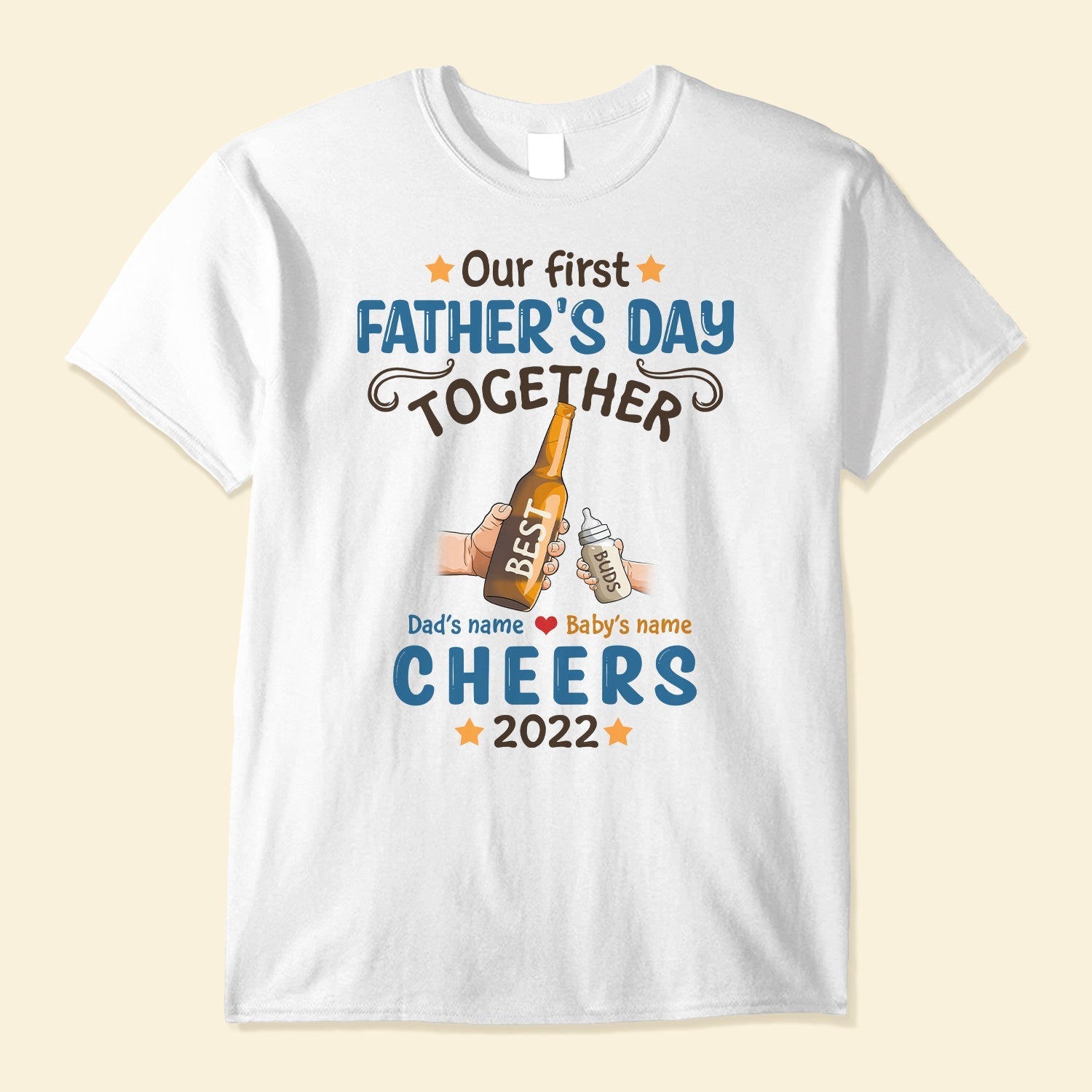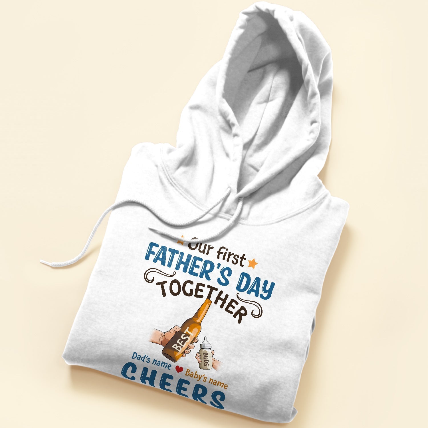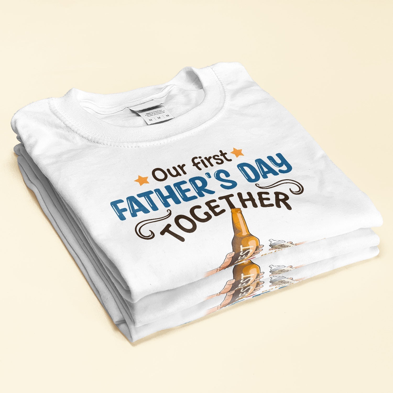 Our First Father's Day Together - Personalized Shirt And Baby Suit - Father's Day Gift For Dad, Baby - Beer And Milk