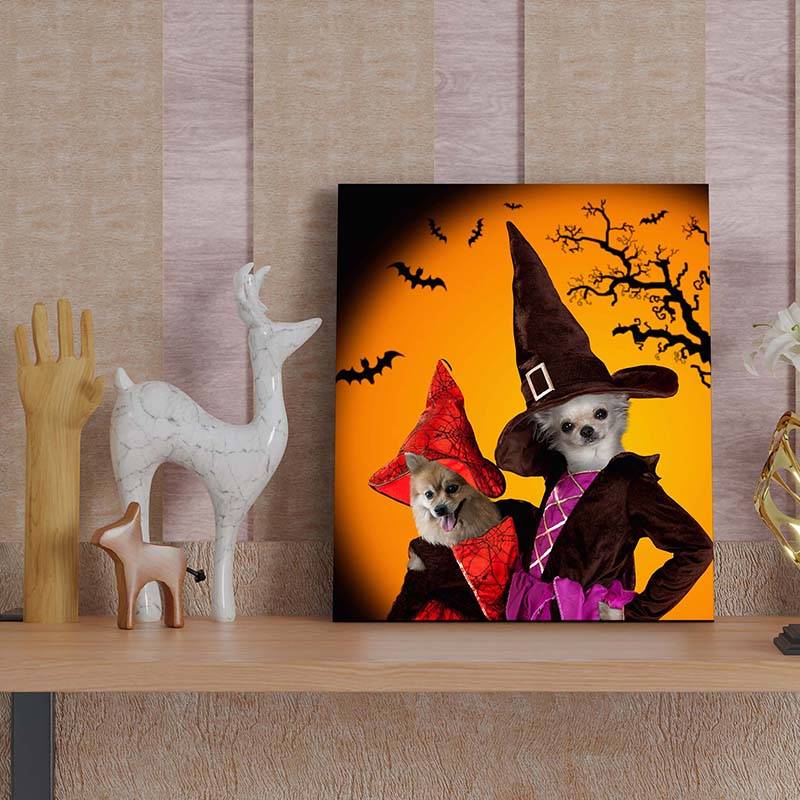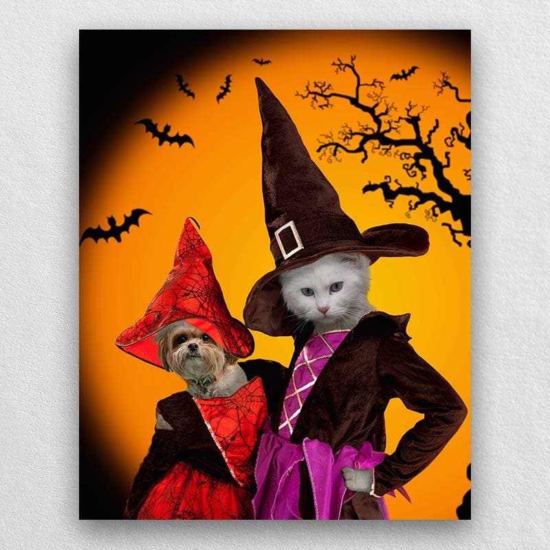 Portrait Of Your Pets In Halloween Witch Costumes