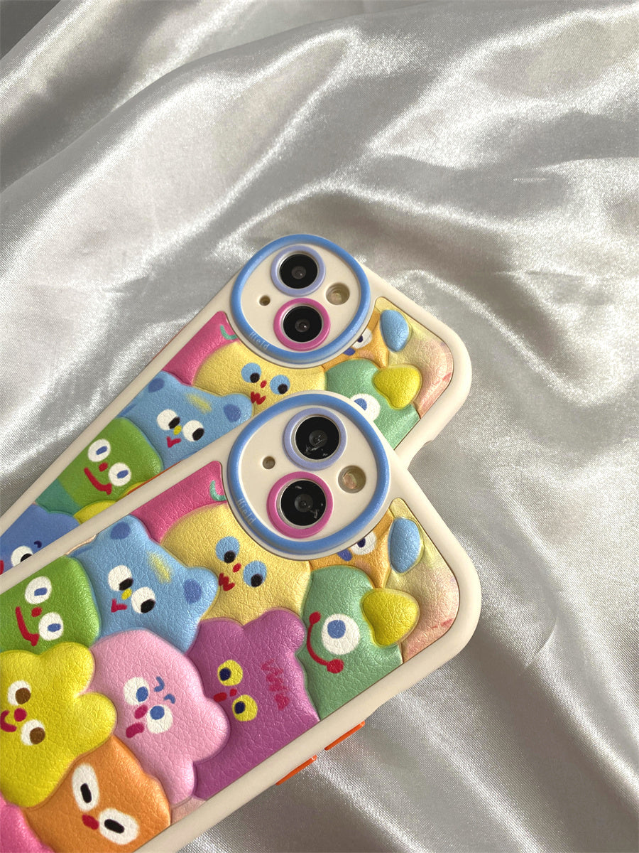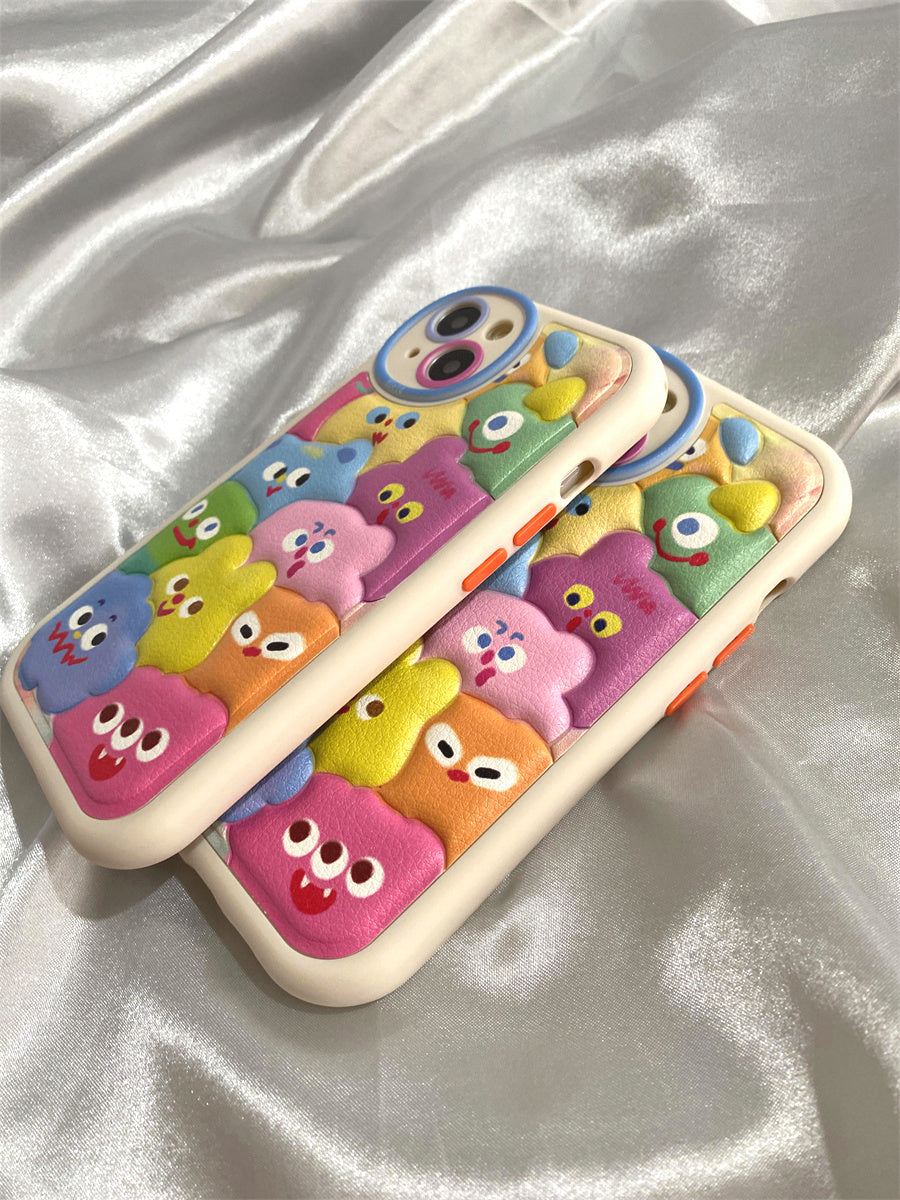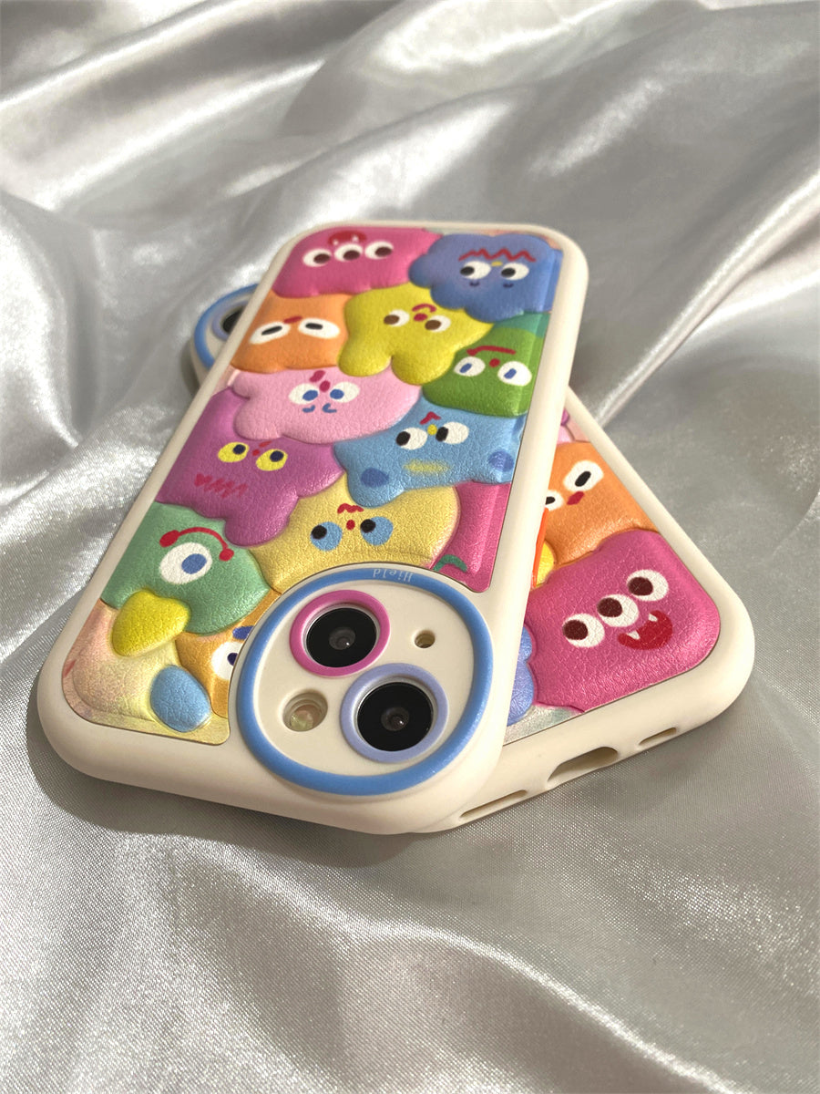 Style: cartoon cute creative applicable cell phone models: Apple / Apple color classification: printed embossed leather pattern - beige - color extrusion small monsters