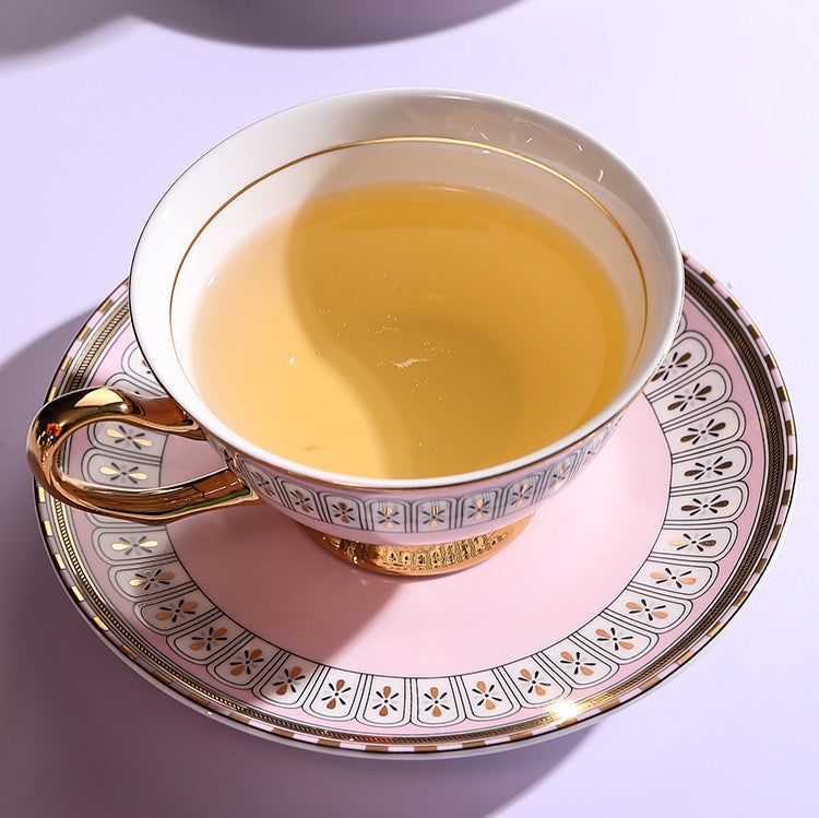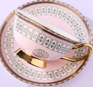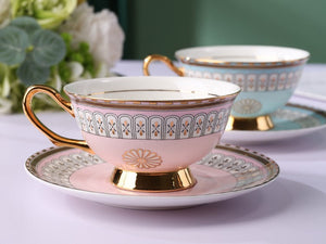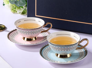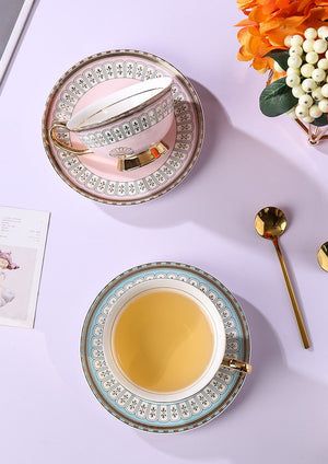 Royal Blue and Pink Bone China Porcelain Tea Cup Set, Tea Cups and Saucers in Gift Box, Elegant Ceramic Coffee Cups, Beautiful British Tea Cups