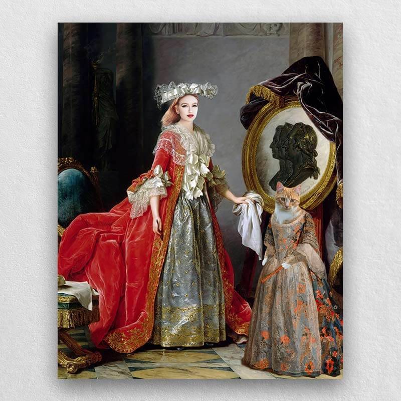 Upload a photo of you and your pet and we'll paint it into a custom designed renaissance royal masterpiece.