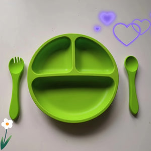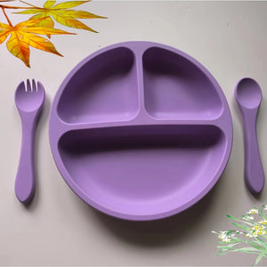 Home Silicone Children's Plate, Baby Multi-suction Cup Partition Plate, Baby Spoon, Baby Spoon And Fork, Baby Food Supplement Bowl, Anti-fall Tableware For Baby For Infant