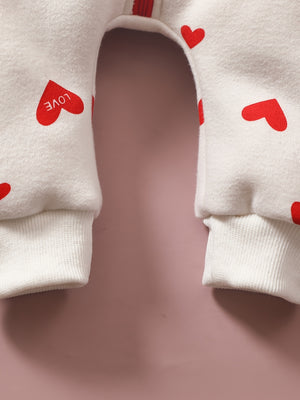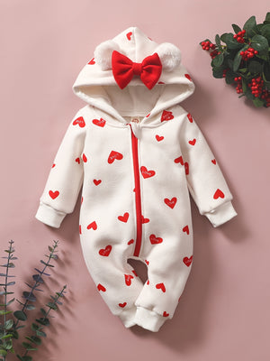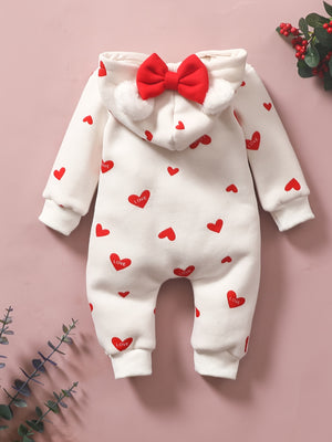 Toddler Baby Heart Print Long Sleeve Hooded Jumpsuit For Girls