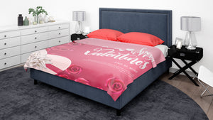 On Valentine's Day, a blanket can be a delightful and cozy gift that symbolizes warmth, love, and affection for your loved one. Here's a description of a blanket on Valentine's Day: