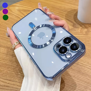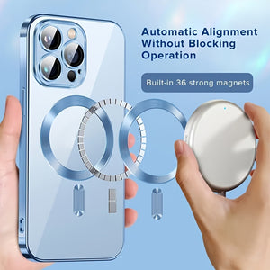 Wireless Charging Phone Case, Silicone Transparent Deluxe Plating Clear Magnet Magsafe Phone Case
