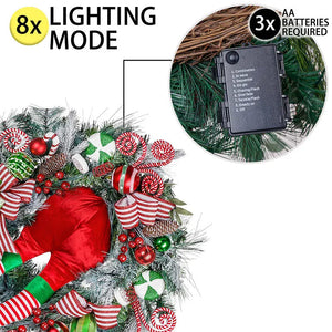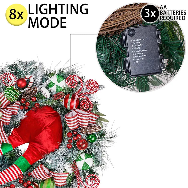 Make your holiday season memorable with our Pre-Lit 24-Inch Big Size Delightful Elf Red Green White Lighted Christmas Wreath. Order now and bring the magic of Christmas to your home!