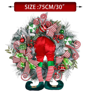 Home Big Size Delightful Elf Red Green White Lighted Christmas Wreath