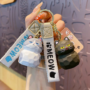 1pc Key Chain, Wood Carved Puppet Cat Key Chain