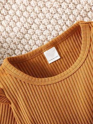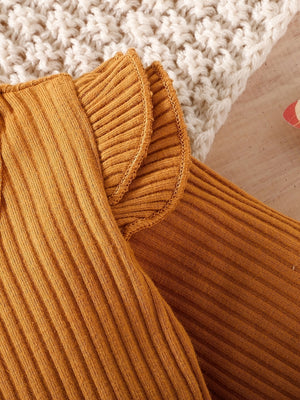 Baby Girls Ruffled Knitted Sweater & Plaid Bow Skirt Set For Winter