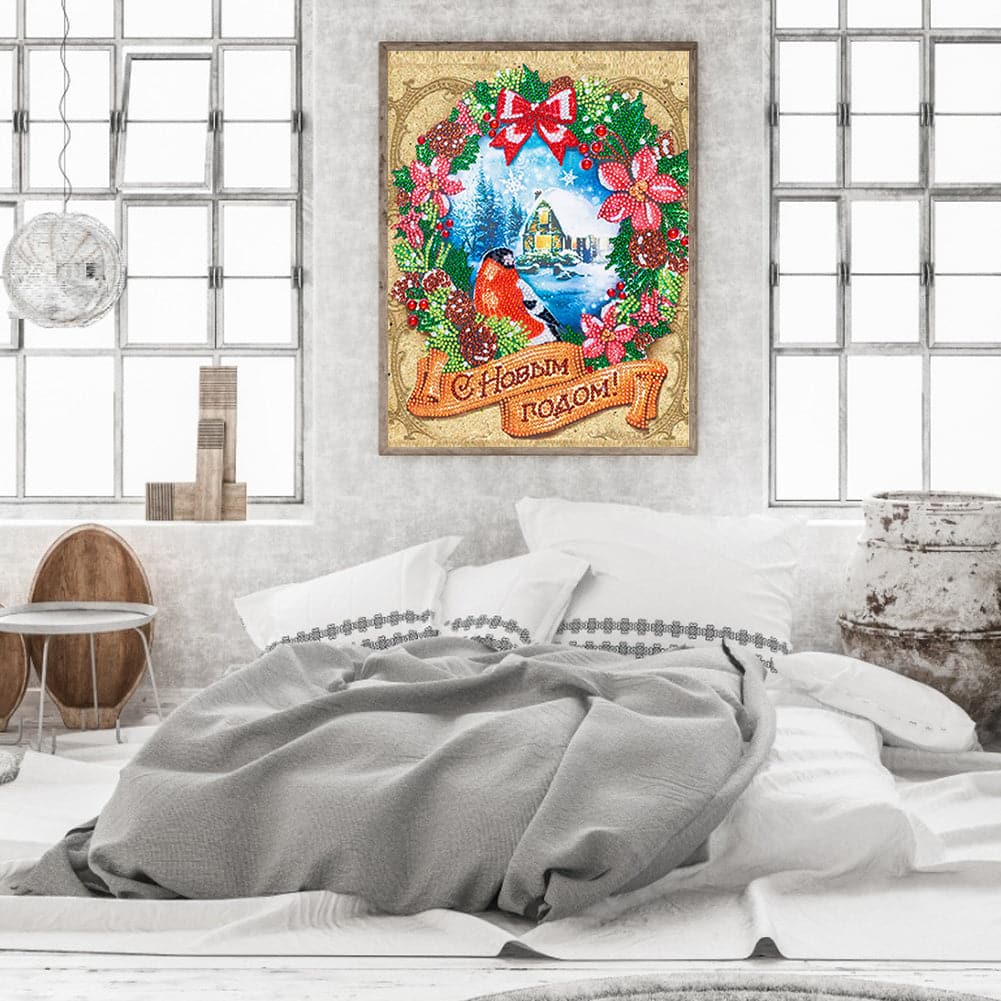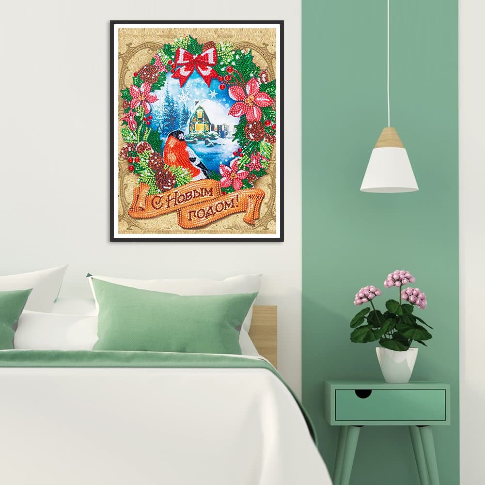 Home Bird Wreath-Partial Special Shaped Diamond Painting 30*40CM