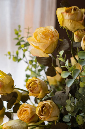 Home Bunch of Yellow Rose Flowers, Artificial Floral for Dining Room Table, Bedroom Flower Arrangement Ideas, Botany Plants, Creative Flower Arrangement Ideas for Home Decoration, Wedding Flowers