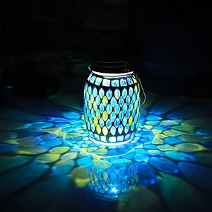 FineUsea 1pc Mosaic Solar Waterproof Outdoor Hanging Lanterns,Table Lamp (Red/Blue)