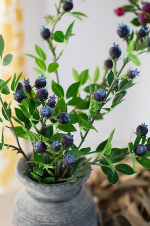 Simple Artificial Flowers for Living Room. Blueberry Fruit Branch. Spring Artificial Floral for Bedroom. Flower Arrangement Ideas for Home Decoration. House Warming Gift