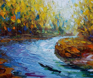 Landscape Art. Autumn River. Abstract Painting. Oil Painting. Modern Art. Canvas Wall Art. Abstract Canvas Art. Original Artwork. Large Art. Abstract Landscape Painting
