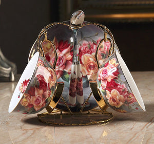 Ceramic Tea Cups and Saucers in Gift Box, Rose Flower Royal Bone China Porcelain Tea Cup Set, Elegant Ceramic Coffee Cups, Beautiful British Tea Cups