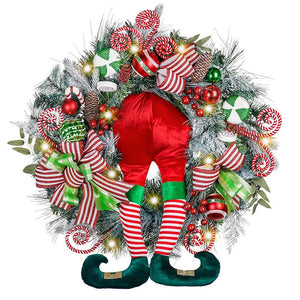 Add a whimsical touch to your holiday decor with our Pre-Lit 24-Inch Big Size Delightful Elf Red Green White Lighted Christmas Wreath. This festive wreath is designed to bring joy and laughter to your home with its playful elf theme, making it perfect for themed home parties and seasonal celebrations.