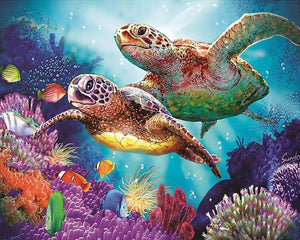 5D DIY Full Drill Square Round Diamond Painting Kit Fantasy,Animal Sea Turtle Diamond Embroidery Wall Painting Home Decor