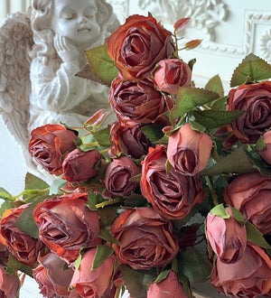 Size: 12 branches of rose flowers. each stem about 16 inch (40 cm) tall and have 3 flowers and 2 flower buds