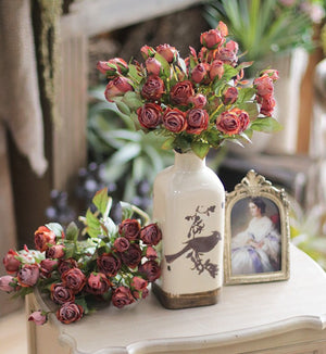 Artificial Floral for Bedroom. 12 Branches of Rose Flowers. Botany Plants. Rose Flower in Vase. Simple Flower Arrangement Ideas for Home Decoration