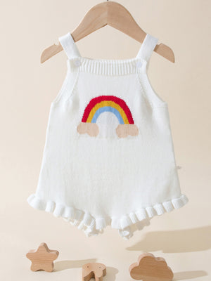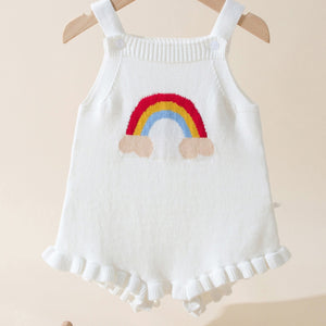 Baby Girls Rainbow Print Romper, Knit Sleeveless Bodysuit Onesie Baby Clothes