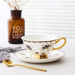 Home British Tea Cups, Porcelain Coffee Cups, Tea Cups and Saucers, Coffee Cups with Gold Trim and Gift Box, Latte Coffee Cups