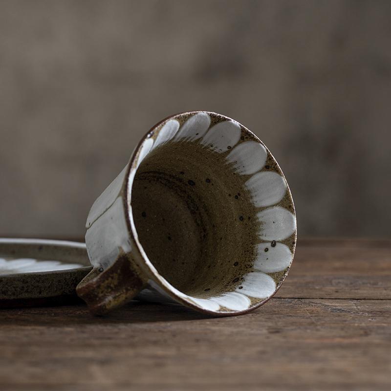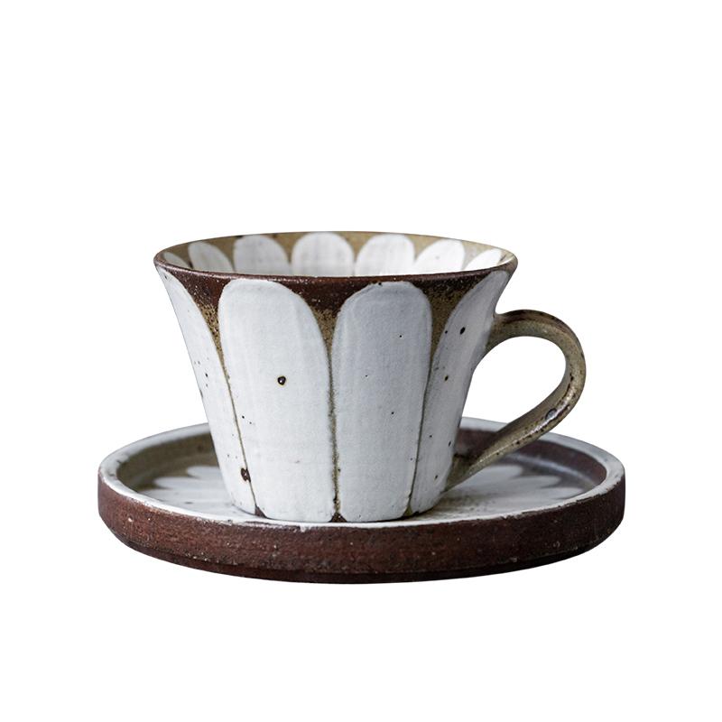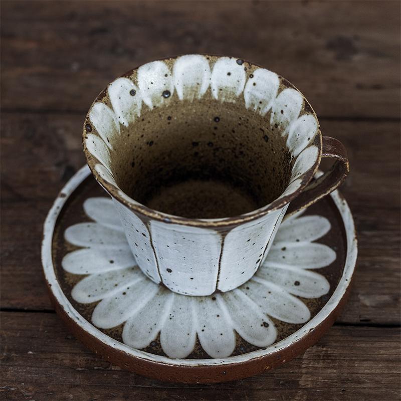 Daisy Flower Pattern Coffee Cup, Cappuccino Coffee Mug, Pottery Coffee Cups, Latte Coffee Cup, Tea Cup, Coffee Cup and Saucer Set