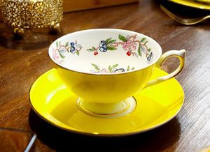 Elegant Yellow Ceramic Cups, Unique Royal Coffee Cup and Saucer, Beautiful British Tea Cups, Creative Bone China Porcelain Tea Cup Set