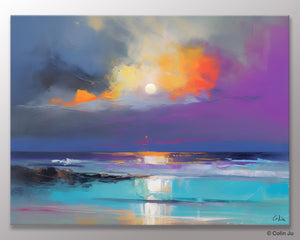 Moon Rising from Sea. Contemporary Wall Art Paintings. Landscape Painting on Canvas. Hand Painted Canvas Art. Extra Large Original Art