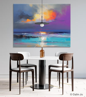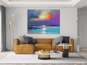 Landscape Painting on Canvas, Hand Painted Canvas Art, Moon Rising from Sea, Contemporary Wall Art Paintings, Extra Large Original Art