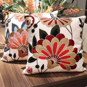 Sofa Decorative Pillows, Embroider Flower Cotton Pillow Covers, Flower Decorative Throw Pillows for Couch, Farmhouse Decorative Throw Pillows