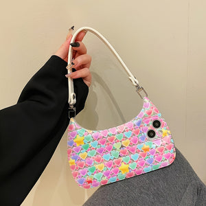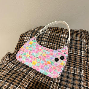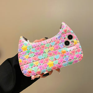 Introducing our 1pc Phone Case with Heart Pattern and Pink Hand Bag - a delightful combination of style and functionality, designed to resemble a fashionable handbag for added charm.
