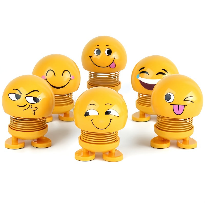 4pcs Car Smiley Expression Pack Spring Shaking Head Doll