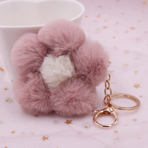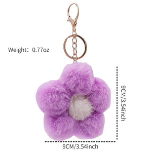 Flower Keychain Plush Flowers Faux Fur Keyring Pom Pom Keychain