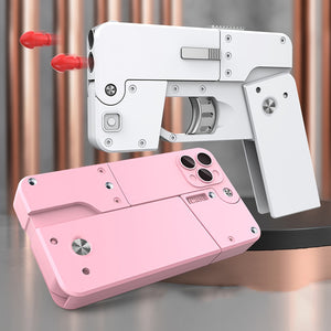 Foldable Gun Toy, Mobile Phone Shape Shell Throwing Submunition Gun Toy, Outdoor Sports Toy, Rubber Bullet Pistol With1*Loader+6*Shell Case+20*Mushroom Shell, For Children Birthday Christmas Gift